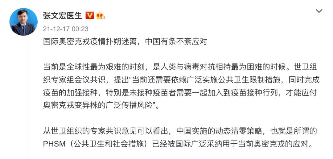 2月17日凌晨,復旦大學(xué)附屬華山醫院感染科主任張文宏通過(guò)其微博發(fā)聲,國際奧密克戎疫情撲朔迷離,中國有條不紊應對。